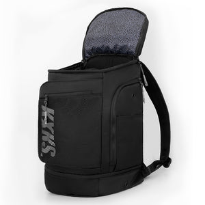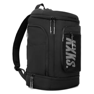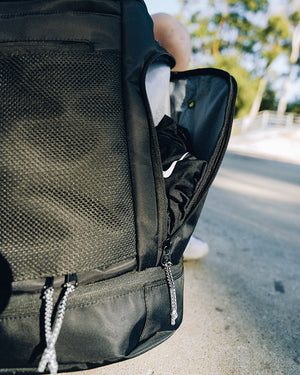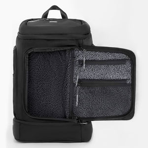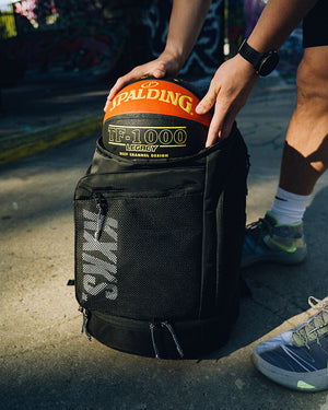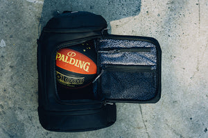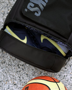 The Game Day Backpack is built for athletes on the move. With a dedicated bottom compartment that fits either a basketball or up to US15 shoes (stacked), it’s designed to adapt to your day. The spacious main compartment can be opened from the top or the front flap for flexible access. Inside, there’s a padded sleeve for up to 16" laptops, while the outer shell features quick-access pockets on the top and front for essentials. One side holds your water bottle; the other a ventilated wet compartment—ideal for post-game gear. Inside the front flap, you’ll find two extra zippered pockets to keep small items secure and sorted.