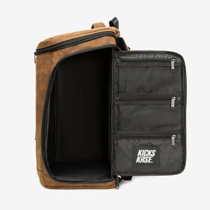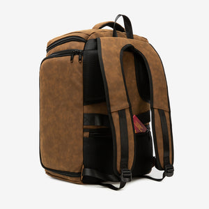 Crafted with a soft vegan suede outer, this backpack delivers a premium, elevated look that’s built for both travel and sport. The spacious main compartment includes 3 padded dividers that can attach anywhere along the inner lining, giving you complete control to customise your packing layout. It fits up to US15 men’s shoes, a 16" laptop, plus clothes and training essentials. Multiple pockets and compartments keep everything organised and easy to access whether you’re at the gym, on the road, or heading to a game.